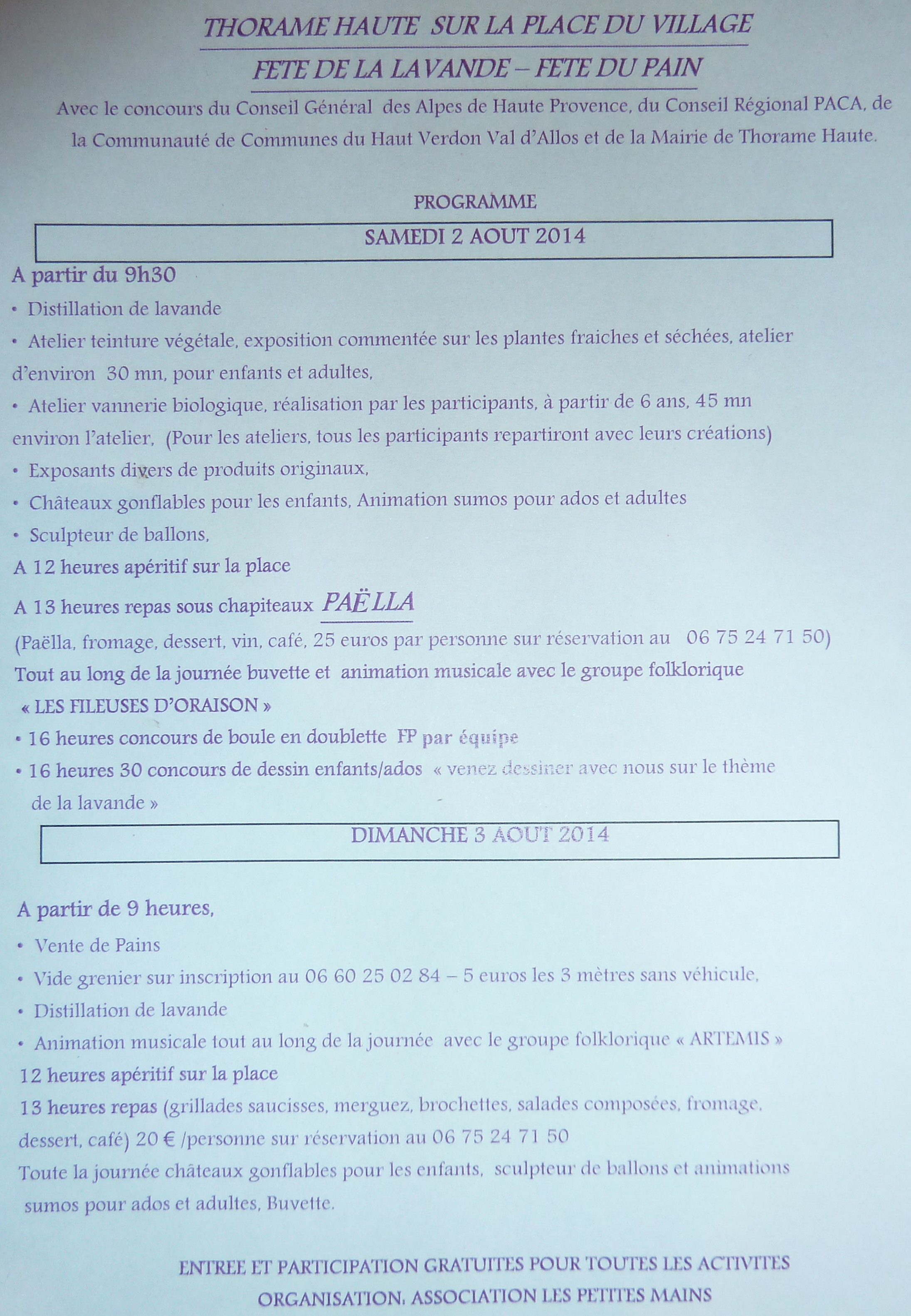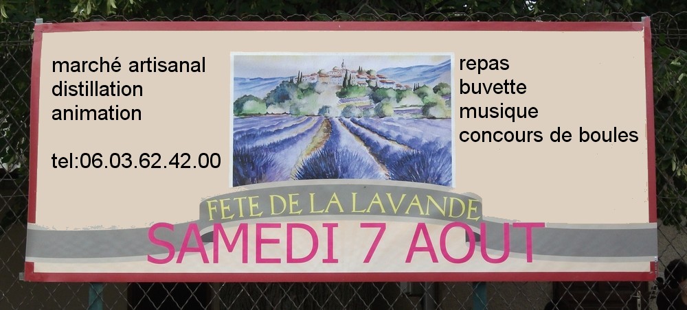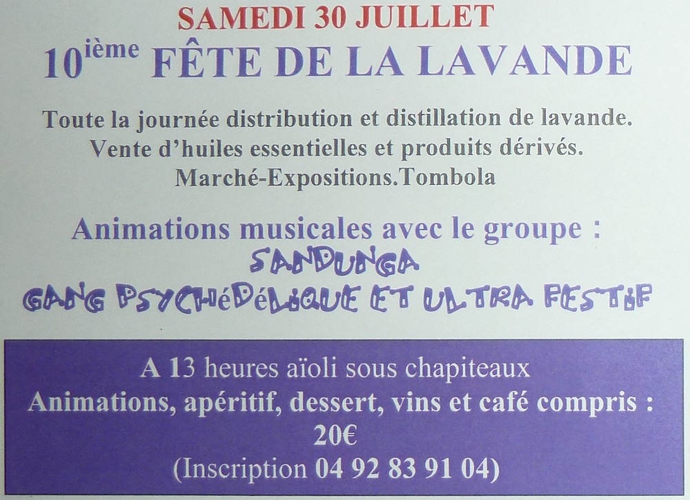 fête de la lavande Fête de la lavande & du pain (Survolez les images pour accéder aux infos ...) 2009 Le programme Les photos 2010 Le programme Les photos 2011 Le programme Les photos 2012 Le programme Les photos 2013 Le programme Les photos 2014 Le programme Les photos 2015 Le programme Les photos 2016 Le programme Les photos 2017 Le programme Les photos 2018 Le programme Les photos 2019 Les photos 2020 pas de fête 2021 pas de fête 2022 Les photos 2023 pas de photos 2024 Les photos Page lue 20344 fois