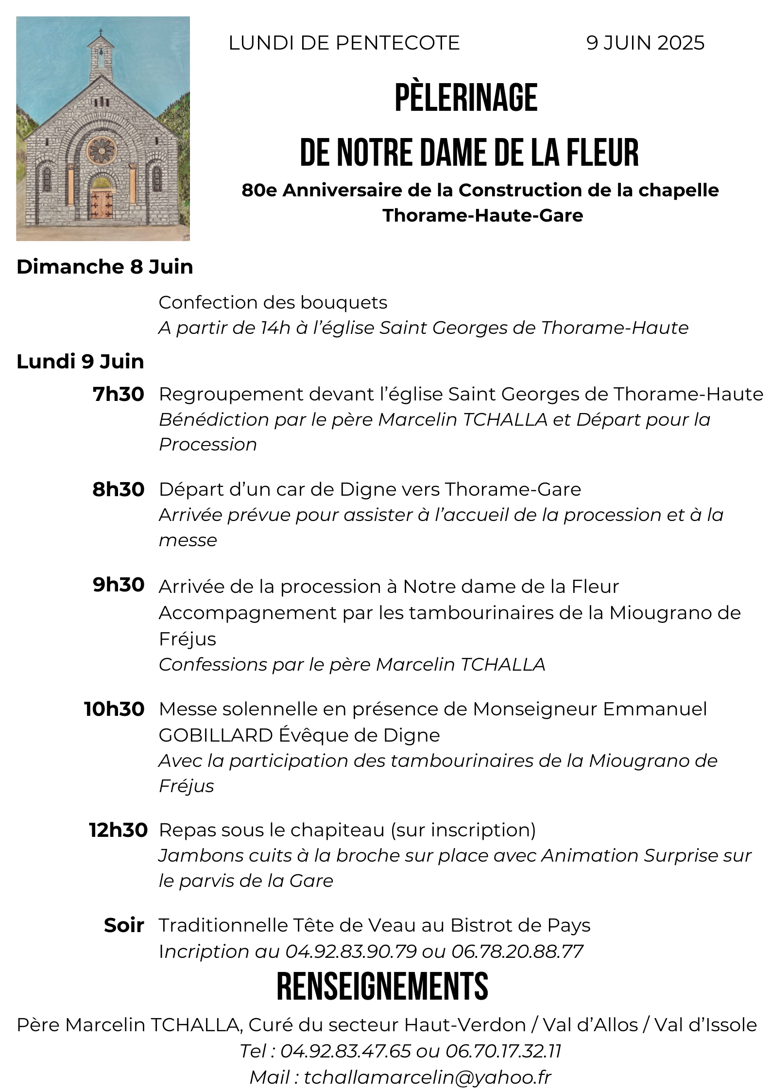 ...La chapelle a été construite, et chaque année le lundi de pentecôte une procession ramène la vierge Marie de l'église de Thorame-haute dans son sanctuaire de la fleur ...